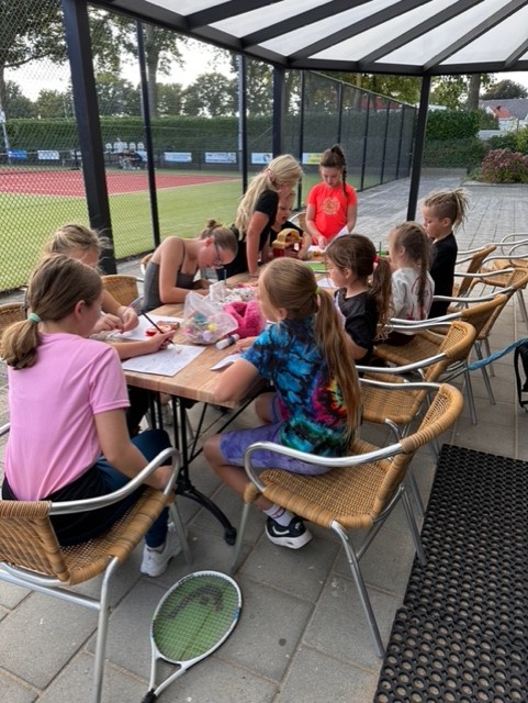 Er werd samen getennist, gekleurd, gespeeld en natuurlijk lekker gegeten. Het was een groot succes: zowel kinderen als ouders hebben volop genoten van deze zonnige middag.